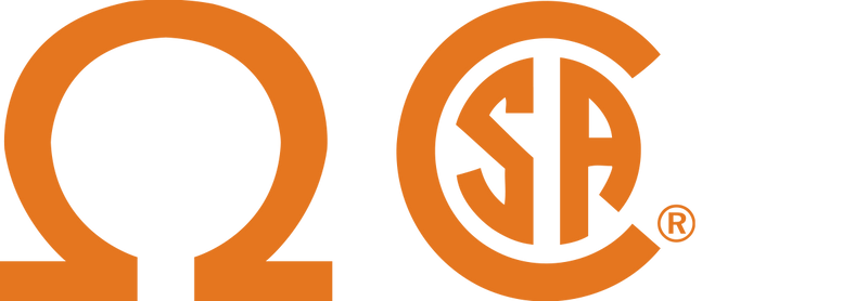 Caractéristiques de sécurité : Rectangle blanc orné de la lettre grecque Omega signifiant que les constructions procurent une résistance aux chocs électriques (18 000 volts avec un courant de fuite n'excédant pas 1mA).